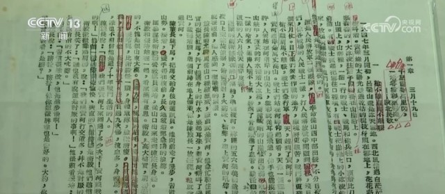 中國出版協(xié)會副理事長兼秘書長 王利明:上邊紅的字就是編輯寫的,紅的墨是助理編輯涂的,紅色下面那些字你還能看得出來,如果用藍色或黑色一畫就看不出來了。出版社編輯和作家本人、地方政府,一起經過無數(shù)次修改,才把這本書推出來。