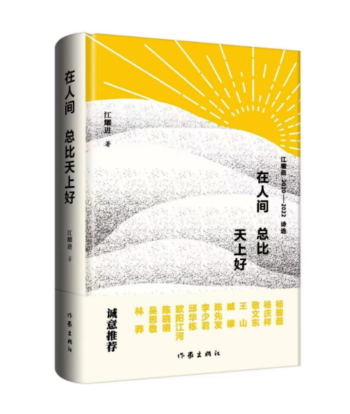 近日,江耀進詩選《在人間總比天上好》由作家出版社出版。詩選共收入作者近三年來創作的247首詩歌作品,分為六集,即:“山河歲月”“生命瞬間”“塵世片斷”“城市鏡像”“日常觀照”和“感恩親人”。