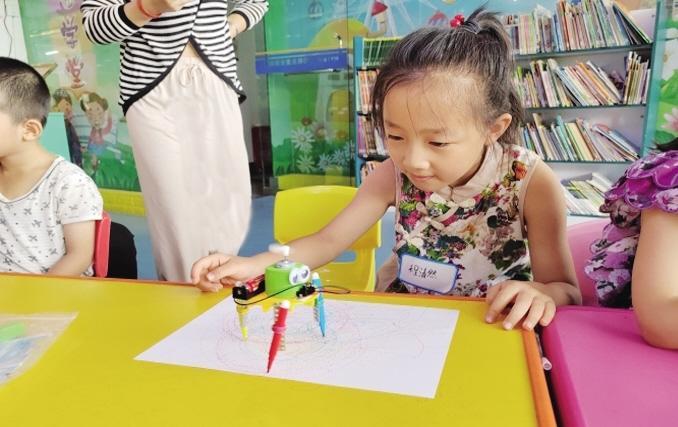 在手工創作環節,主持人帶領孩子們拼裝可以自動涂鴉的機器人。孩子們一絲不茍地按照要求分別完成了模型組裝、線路連接、通電啟動等拼裝。當小機器人在高速旋轉中帶動畫筆起舞,在白紙上勾勒出一圈又一圈的彩色線條時,孩子們發出了興奮的驚嘆。