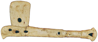 一件有柄穿孔陶斧引發關注。它由泥質紅陶制成,分柄和穿孔斧兩部分,柄為橢圓形棒狀,前粗后細,前端翹起,有淺槽可嵌入穿孔斧。槽后有三孔,可穿繩縛住穿孔斧,使其固定在槽內。柄后端作半月形,并有三角形穿孔。這件有柄陶斧雖非實用工具,但為當時穿孔石斧的裝柄方法提供了實物證據,讓我們能想象它的功能。陶器基本是素色,器類齊備、器形多樣,鼎、鬶、缽、杯、盆、瓶、壺、豆等應有盡有。有的夾砂陶中摻雜有蚌殼粉末,體現水鄉地域特點。青墩陶器造型穩重、優美,線條簡練而充滿動感,顯示出史前青墩人對于生活的感受。