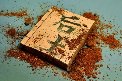 試看鄒強的作品《歷史的痕跡》,該書通過對諸多中國古代遺跡的刻畫,展現了中華民族的厚重歷史。為了凸顯書籍的斑駁、古樸之感,藝術家采用了歷經十數年風吹日曬的舊書頁碎片作為封面,其上布滿的苔蘚和嵌入其中的桂花枯枝皆是自然形成,巧妙地將“時間”這一概念進行了具象化呈現。葉盈盈的《后土之間》形如一方土塊,當讀者翻開書頁,便會聞到由特殊再生紙所散發的草木香氣,仿若置身自然鄉野。李巖的《逐夢寰宇問蒼穹》則以透明亞克力材料作為書頁,彰顯出濃郁的科技感與未來感。這些可觸可感的材質細節不僅與書中內容形成呼應,更為作品帶來了十足的藝術張力。