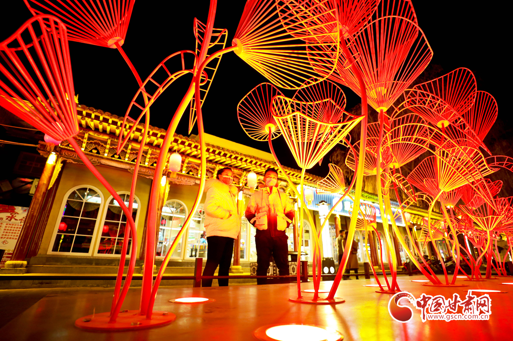 春節(jié)臨近,甘肅省張掖市甘州區(qū)文化廣場(chǎng)、公園等地,各種大型彩燈把城市裝扮得火樹(shù)銀花、璀璨繽紛,大街小巷彰顯著歡樂(lè)喜慶的節(jié)日氣氛,年味十足。