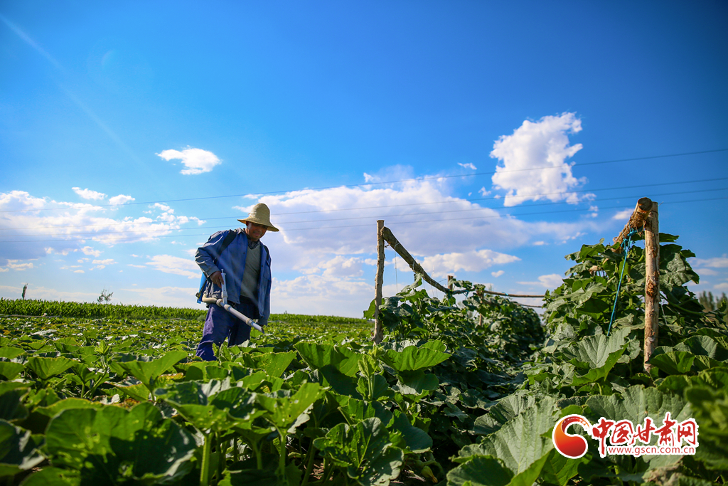 6月29日,在甘肅省酒泉市三墩鎮的田間地頭,處處可見村民們搶抓時節打藥除草、施肥扶苗的身影,茫茫田野呈現出一派忙碌的勞作景象。