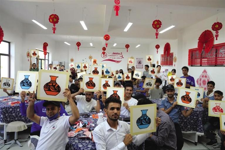 中國甘肅網7月8日訊 據蘭州日報報道(蘭州日報社全媒體記者 張丹)7月5日,在蘭州新區西岔園區蘭州太平鼓教育保護實踐基地,40名來自巴基斯坦、也門、老撾等國家的蘭州理工大學留學生,拿起鋤頭翻地、吟誦古詩詞、學打太平鼓……體驗濃郁西北風情,感受中國傳統文化魅力。參加此次實踐研學活動的留學生,學習體驗了蘭州太平鼓、蘭州鼓子、蘭州陶藝、蘭州剪紙、蘭州刻葫蘆、中華國學教育和農耕實操等傳統非遺課程。