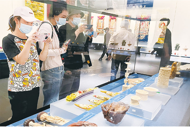 2022年7月3日,香港故宮文化博物館正式對公眾開放參觀。圖為觀眾在香港故宮文化博物館展廳內參觀拍照。 新華社記者 王申/攝