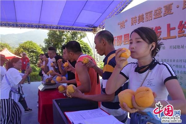 活動中,還開展了 “最大桃王”“最甜桃后”評比和吃黃桃比賽,將現場氣氛推向了高潮。活動最后,還開啟了2022年新邵縣“新邵資味”農特產品短視頻暨直播大賽。