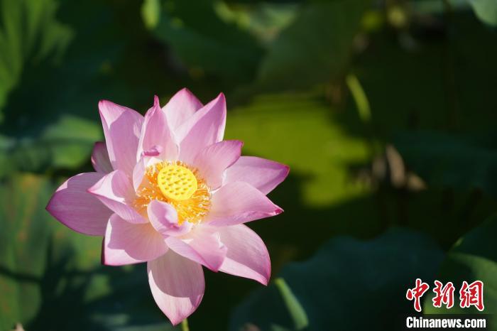 資料圖:圖為荷花美麗綻放。游海飛 攝