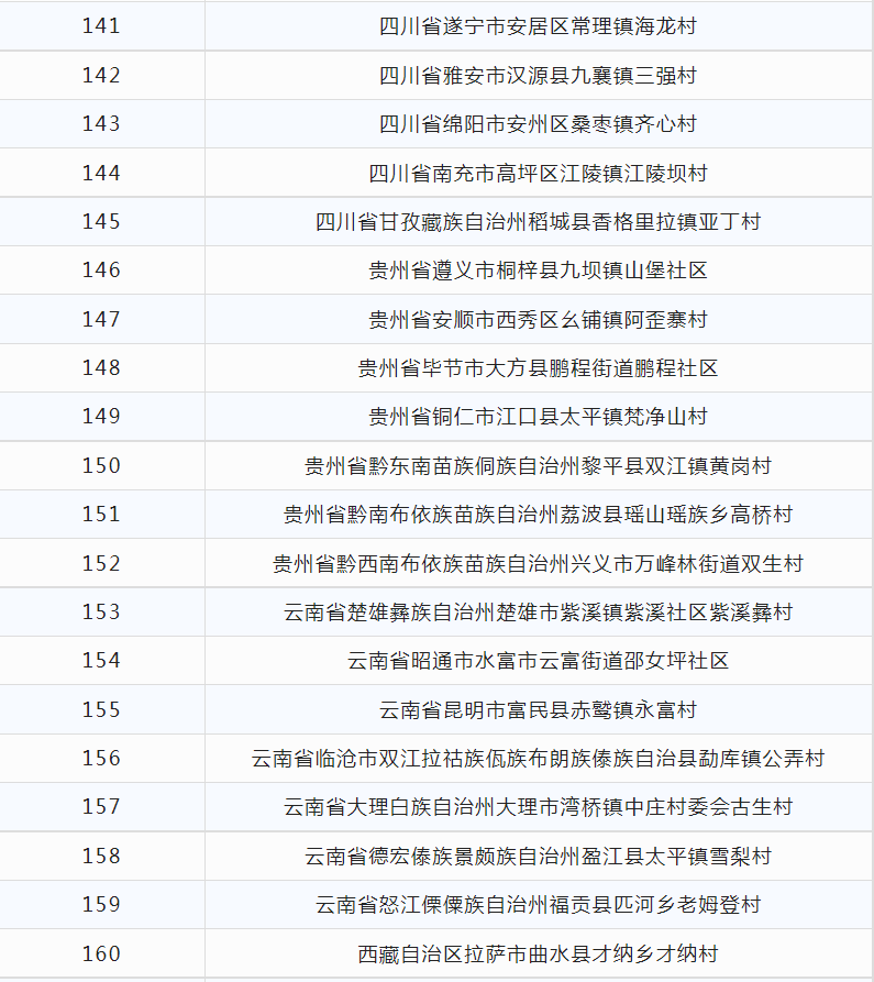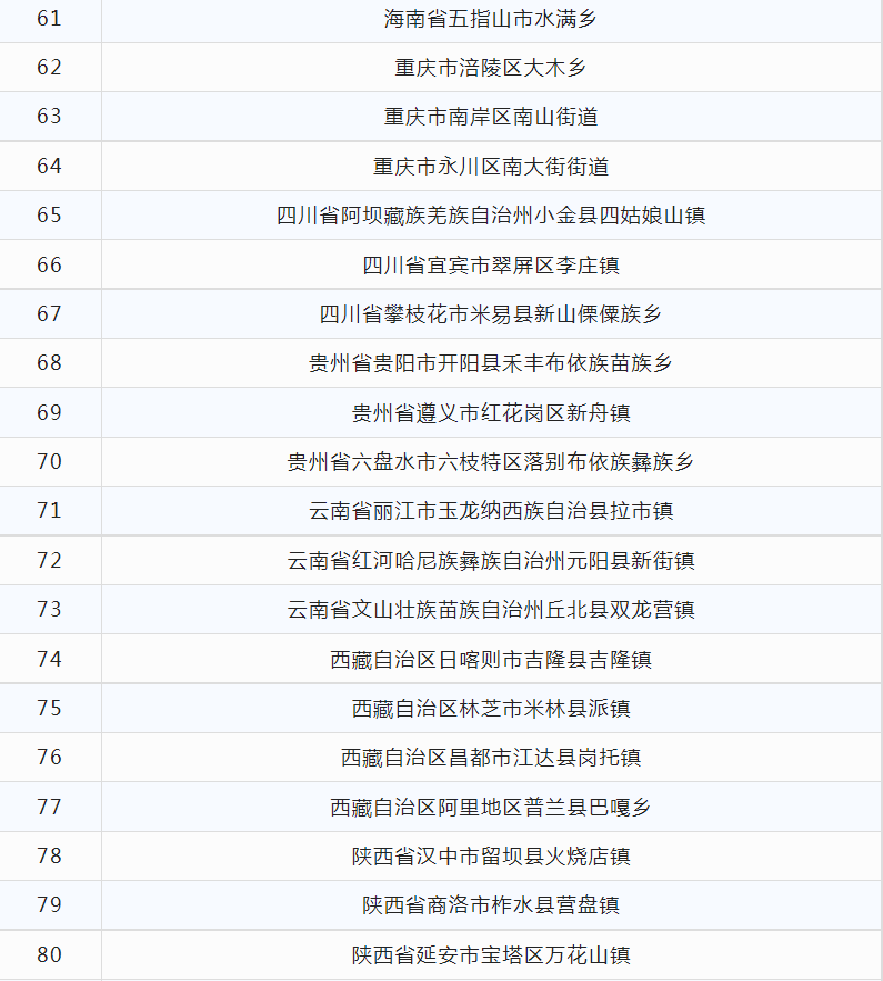 第二批全國鄉村旅游重點鎮(鄉)名單