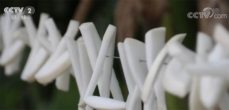 四川省瀘州市納溪區豐樂鎮村民 李焱梅:切得時候是有規矩的,先切成片,然后切成一條一條的斜杠,牽起來一片就是一條。
