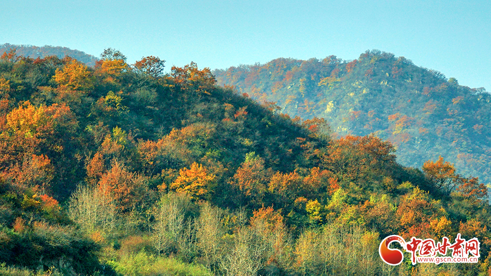 初冬時節,崇信縣境內的五龍山風景優美,山上的喬木葉子漸漸變黃變紅,紅色、黃色、綠色交相輝映,漫山遍野繽紛如花,為大地披上一層彩衣,形成一幅幅美麗的畫卷,漫步鄉村郊野,猶如在畫中游覽,令人流連忘返。