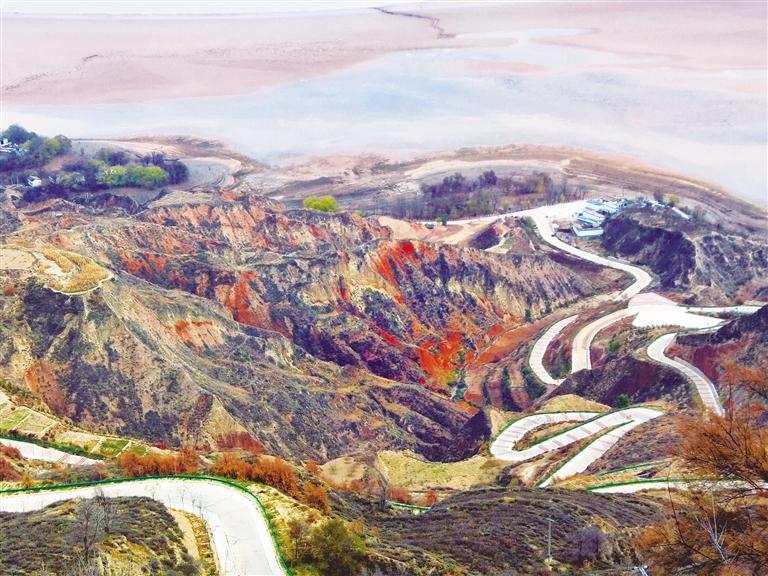 初冬時(shí)節(jié)的劉家峽庫(kù)區(qū)沿岸,盤山公路、丹霞地貌與碧水構(gòu)成了一幅多彩畫(huà)卷