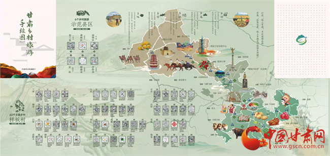 據了解,為了深入推進文旅市場復蘇百日攻堅行動,加強產品開發供給,促進鄉村旅游升溫,省文旅廳于12月13日發布了2022版甘肅鄉村旅游手繪圖。手繪圖以“相約隴原促振興·富了口袋富腦袋”為主題,對2022年創建的6個鄉村旅游示范縣,60個文旅振興鄉村樣板村開發設計了電子“二維碼”,設置了甘肅省鄉村旅游60條四季精品線路,幫助游客品味鄉村風情、感知鄉村文化、體驗鄉村魅力,進一步展示甘肅鄉村旅游新形象、擴大鄉村旅游影響力,做亮“隴上鄉遇”鄉村旅游品牌,打造“隴上鄉遇”鄉村旅游全景圖。