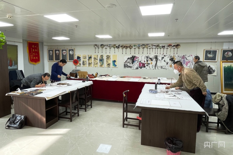 市民在美術館內進行書畫創作(央廣網發 慶陽市委宣傳部 供圖)