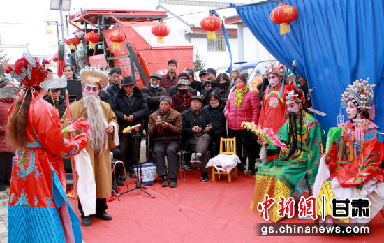 中新網甘肅新聞2月8日電 (朱玲)農歷正月,走進華亭市西華鎮西塬村,山村隱掩處,遠遠聽聞古樸蒼勁的戲曲腔調傳來。村部院落里,村民或站或蹲,里三層外三層地將表演者圍了個水泄不通。