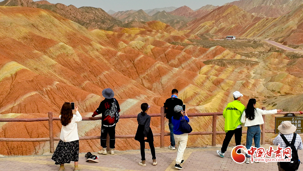 5月1日,甘肅張掖七彩丹霞旅游景區內游人如織,來自全國各地的18000多名游客慕名前來,欣賞獨特的丹霞地貌,領略大自然雄奇壯觀的景色。