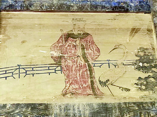 戲樓內二簾額板和梁柱上較好地保存了許多清代彩畫,其中以墨書“太古元音”和彩畫“天官賜福圖”最為精彩。