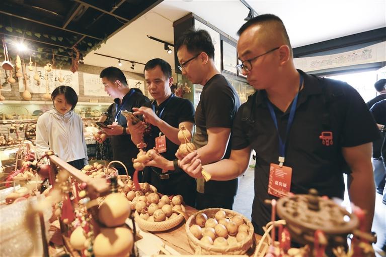 參會嘉賓觀看刻葫蘆工藝品 張建平 攝
