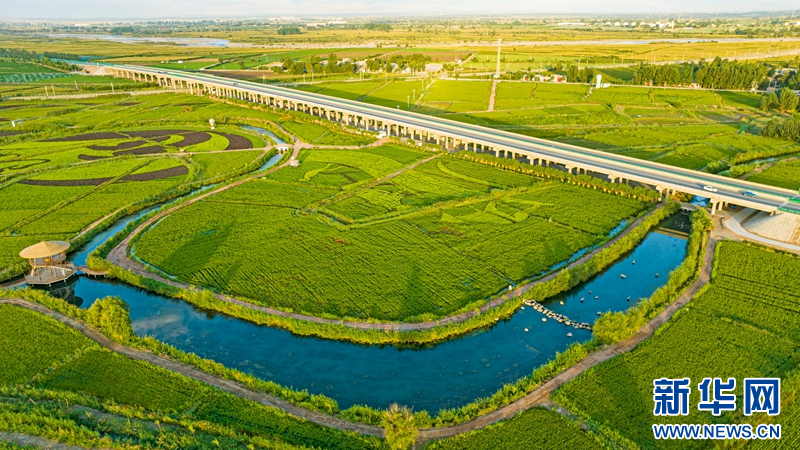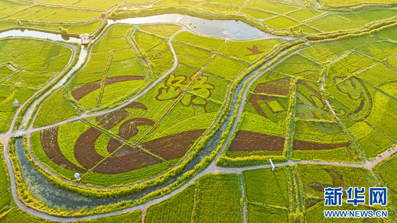 8月20日,在甘肅省張掖市甘州區(qū)烏江鎮(zhèn)新河田園綜合體藝術(shù)稻田景觀區(qū),以“絲路水鄉(xiāng)·稻畫田園”為主題組成的稻田畫惟妙惟肖、栩栩如生,呈現(xiàn)出祁連山下別樣的田園魅力。新華網(wǎng)發(fā)(成林 攝)