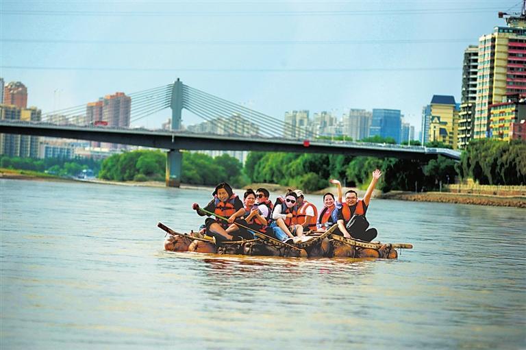 入秋以來,蘭州文旅市場持續火熱,不少游客前來旅游。9月14日,游客在黃河蘭州段乘著羊皮筏子漂流黃河,感受與母親河的“零距離”接觸。