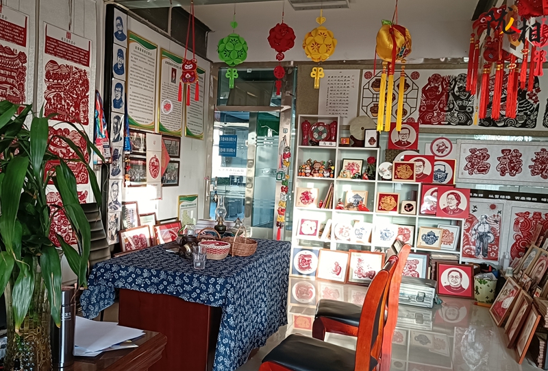 走進中國民間剪紙藝術大師馬路的工作室,陳列在側的剪紙作品在窗內的光影下顯得栩栩如生、惟妙惟肖。