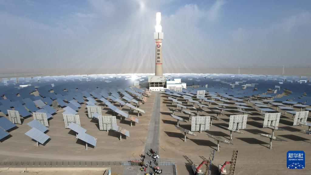 1月18日,研學團隊學員在甘肅省敦煌市光電產業園區開展研學活動(無人機照片)。新華社發(張曉亮 攝)