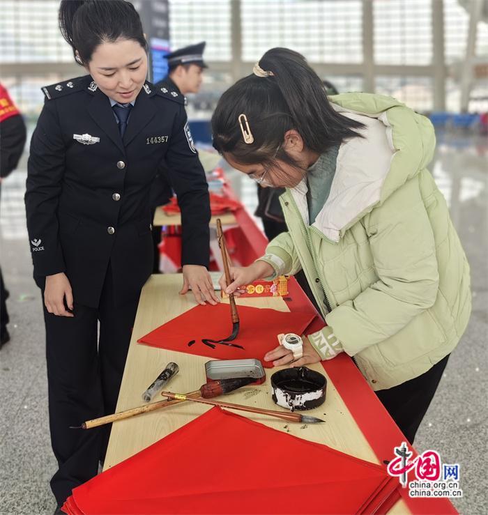 本次活動(dòng)由莆田車站派出所牽頭組織,聯(lián)合中信銀行、莆田站共同開展。活動(dòng)期間,民警與志愿者在莆田站甬廣場候車室為旅客發(fā)放高鐵安全宣傳單及春聯(lián),并由青年民警現(xiàn)場書寫春聯(lián)、福字送給來往旅客,將平安、溫馨傳遞給每一個(gè)人。