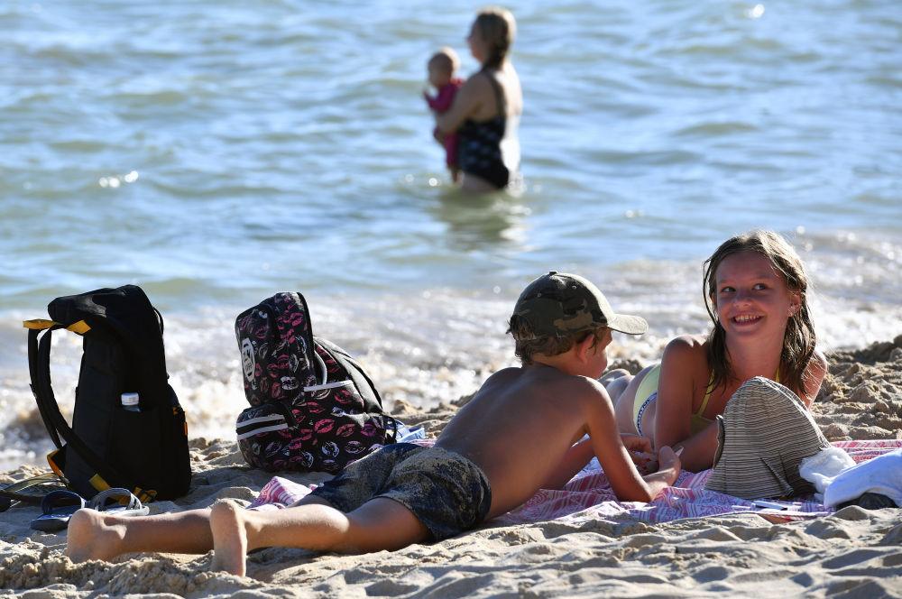↑冬日的海南三亞艷陽高照,外國小朋友在三亞市大東海玩耍。新華社記者 郭程 攝(資料圖片)