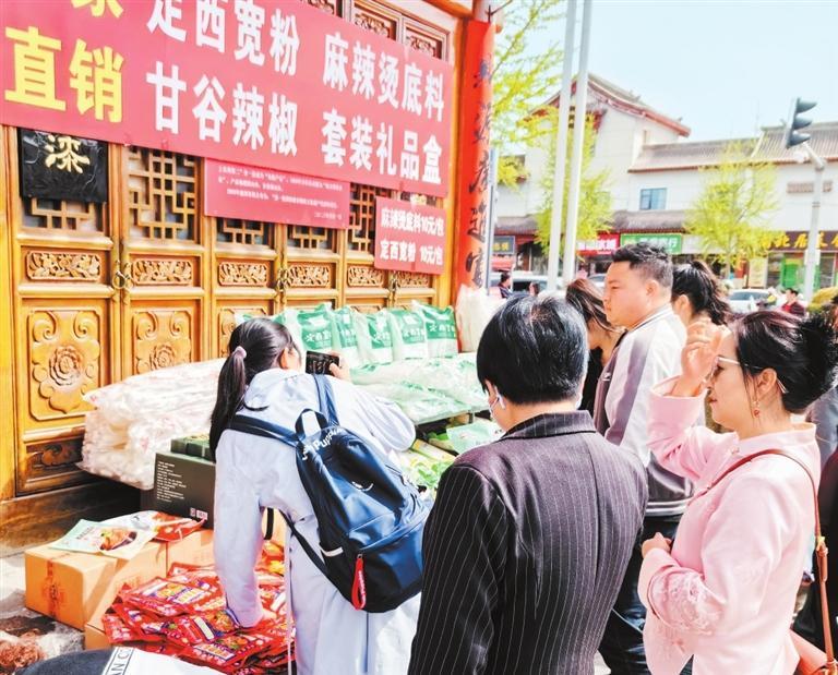 游客在代銷點(diǎn)購買麻辣燙底料和粉條。新甘肅·甘肅日報(bào)記者 顧麗娟