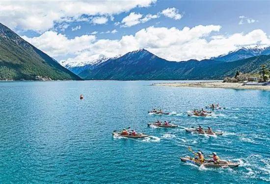 4月20日,2024年巴松措國(guó)際漂流公開(kāi)賽的選手在比賽中。 新華社記者 孫非攝