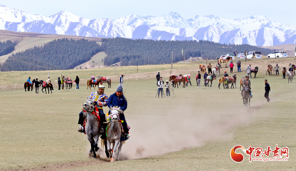 “五一”假期,甘肅省張掖市肅南裕固族自治縣康樂草原景區“民族大團結”賽馬活動拉開帷幕,騎手們在祁連山下的康樂草原上展開了民族走馬、速度賽馬角逐,吸引了眾多游客前往觀賞賽馬和領略雪山、森林、草原為一體的祁連山美麗景色。