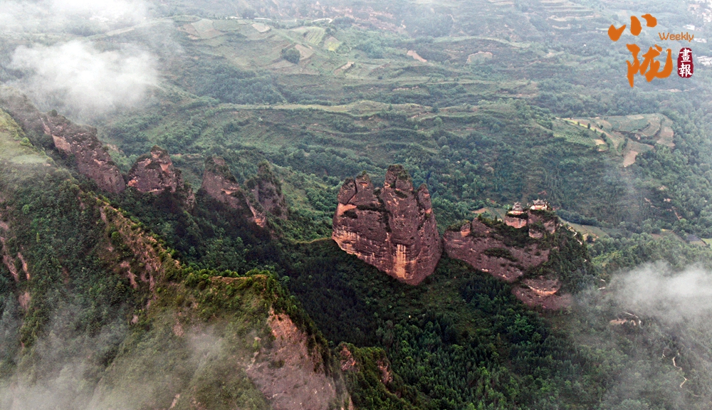 從空中俯瞰,牛頭山險壑錯綜,崖高十余丈,四面凌空,直立如削,呈現陽剛挺拔之勢。