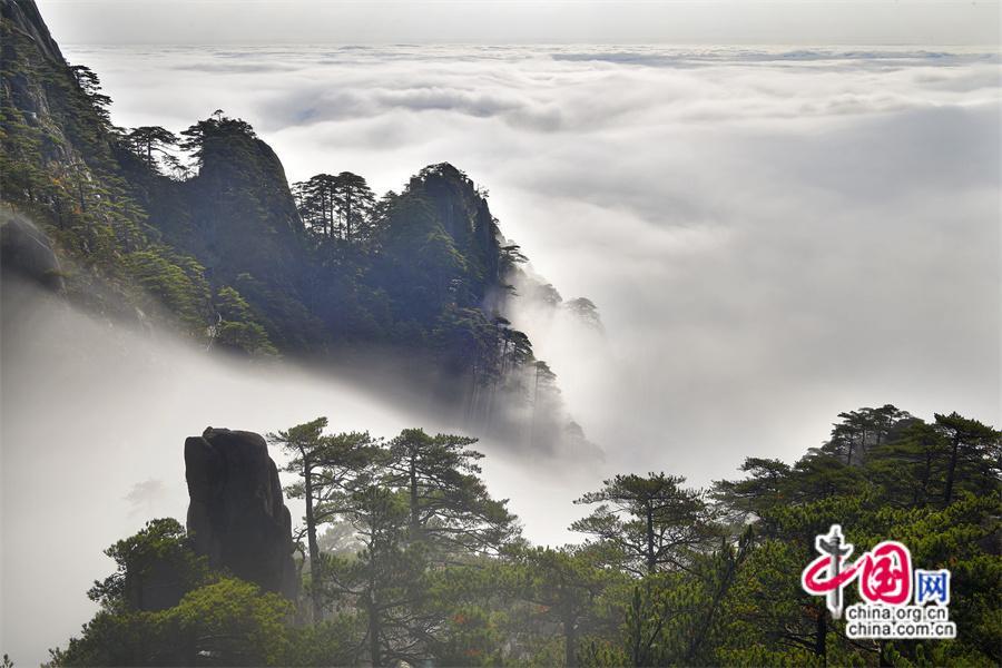 每年11月是黃山瀑布云頻頻出現的季節,經過前日的降雨和降溫,連續多天都出現了氣勢磅礴的“瀑布云”景觀。