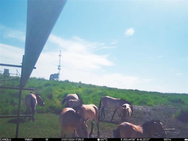 近日,甘肅敦煌西湖國(guó)家級(jí)自然保護(hù)區(qū)管護(hù)中心工作人員整理紅外相機(jī)拍攝畫(huà)面時(shí),發(fā)現(xiàn)拍攝到普氏野馬“哺乳”的清晰影像。畫(huà)面拍攝于今年7月下旬,有8匹普氏野馬繁殖群正在馬圈灣濕地的飲水泉附近活動(dòng),其中有一匹小馬駒滿(mǎn)足地吸吮著母馬的乳汁。據(jù)監(jiān)測(cè),該小馬駒出生于6月上旬,畫(huà)面中約已有一個(gè)半月大小,身體健康,毛色光亮。這個(gè)繁殖群領(lǐng)地范圍主要從馬圈灣西觀(guān)景臺(tái)至馬圈灣東高地,該區(qū)域可采食物種類(lèi)豐富、水源充沛,是適合普氏野馬生活的美麗家園。普氏野馬是國(guó)家一級(jí)重點(diǎn)保護(hù)動(dòng)物,常棲息于山地、草原和荒漠,性機(jī)警、善奔跑。近年來(lái),隨著敦煌西湖保護(hù)區(qū)生態(tài)環(huán)境保護(hù)力度加大,生態(tài)環(huán)境質(zhì)量持續(xù)改善,群眾保護(hù)野生動(dòng)植物的意識(shí)不斷增強(qiáng),使野生動(dòng)物活動(dòng)范圍不斷擴(kuò)大,種群數(shù)量不斷增加。截至目前,敦煌西湖保護(hù)區(qū)內(nèi)普氏野馬種群數(shù)量已達(dá)166匹。