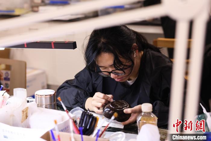 江西省文物考古研究院的丁金果也是“00后”,且參與了新展出漆器的修復。她表示,?;韬钅钩鐾恋钠崞髟谒薪萘嗽S久,大多數漆器已經嚴重變形、破碎。經過清洗、脫水、矯形、粘接、髹漆等諸多步驟,這些漆器便能再現原貌,但也需要大量的時間去修復。