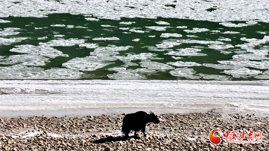 在黃河流經甘肅的首站——瑪曲縣木西合鄉境內的七仙女峰,此刻目睹黃河的壯麗風光,流凌的出現為這幅天然畫卷增添了一抹濃重的色彩,晶瑩剔透的冰凌順流而下,互相碰撞,隨著河水浩浩蕩蕩蜿蜒向前,在陽光的折射下,猶如珍珠瑪瑙般璀璨,鑲嵌在母親河的懷抱之中。