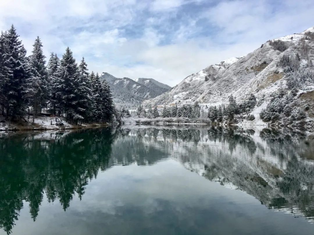 群山環抱,峰巒疊嶂,山巔之上,白雪皚皚,云霧繚繞,這山、這水、這雪、這霧,共同構成了一幅絕美的冬日畫卷,讓人陶醉其中,流連忘返。