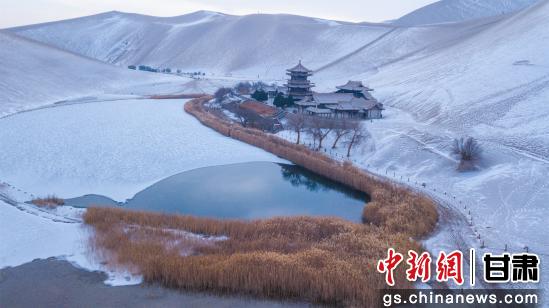 12月10日,甘肅敦煌迎來今年入冬以來的第二場降雪。雪后的鳴沙山月牙泉景區風景如畫,吸引了眾多游客前來賞雪景、拍照打卡。王斌銀 攝