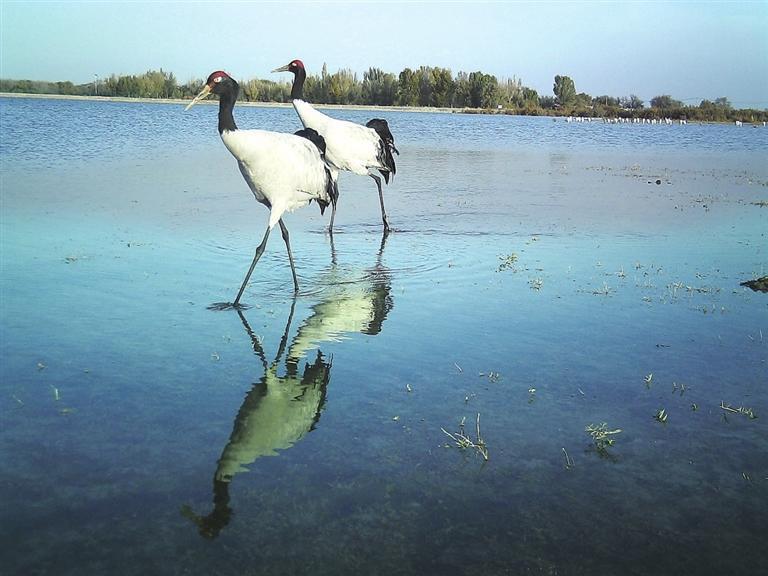 黑頸鶴漫步甘肅雙塔濕地