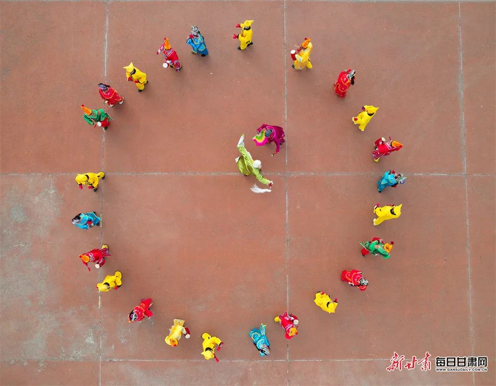嘉峪關市文化館組織當地非遺地蹦子表演者排練,為2025年春節社火展演作準備。新甘肅·每日甘肅網通訊員 馬百旺