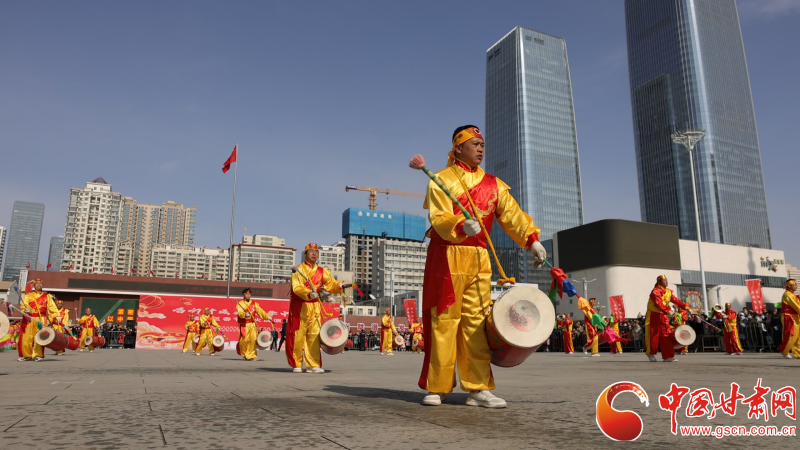 隨著開(kāi)場(chǎng)鑼鼓響起,廣場(chǎng)瞬間被喜慶氛圍包圍。大鼓與舞獅表演率先登場(chǎng),雄渾的鼓聲與靈動(dòng)的舞獅相得益彰,贏得觀眾陣陣喝彩。隨后,《妹妹的山丹花》以優(yōu)美的旋律和歡快的舞姿,生動(dòng)展現(xiàn)了西北地區(qū)的獨(dú)特風(fēng)情。