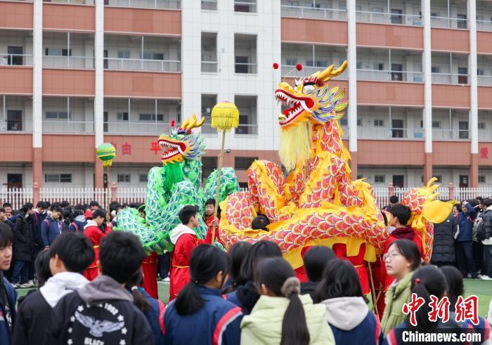 2025年2月7日,貴州省銅仁市玉屏侗族自治縣第一中學(xué)開展“舞龍迎元宵”主題活動,學(xué)生們在老師的帶領(lǐng)下進行舞龍表演,感受傳統(tǒng)民俗,喜迎元宵佳節(jié)。胡攀學(xué) 攝