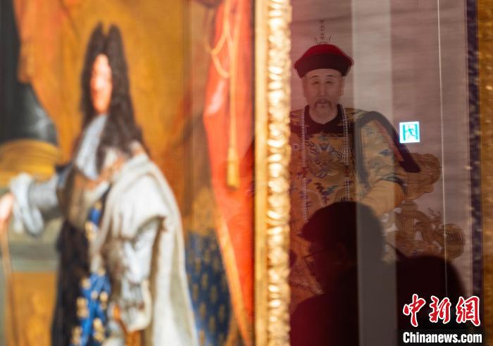 2月19日,正在香港故宮文化博物館持續展出的“當紫禁城遇上凡爾賽宮——十七、十八世紀中法文化交流”展部分珍品煥新亮相,《康熙帝戎裝像》《龐巴杜夫人像》等約20件故宮博物院、法國凡爾賽宮的珍貴展品與公眾見面,繼續“講述”中法文化之交。圖為展廳玻璃映襯的故宮博物院藏《雍正帝朝服像》(右)和法國《路易十四肖像》。中新網記者 侯宇 攝