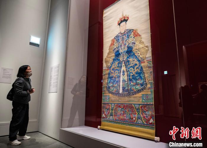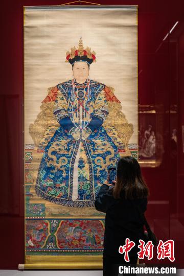 圖為觀眾觀看故宮博物院藏《孝莊文皇后朝服像》展品。中新網記者 侯宇 攝