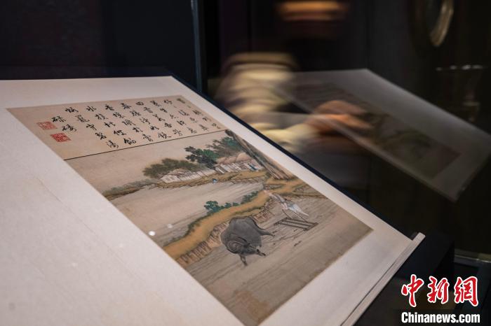 圖為故宮博物院藏《胤禛耕織圖(碌碡)》展品。中新網記者 侯宇 攝