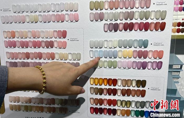 2月17日,在山東煙臺一家美甲店,顧客在選擇顏色。王嬌妮 攝