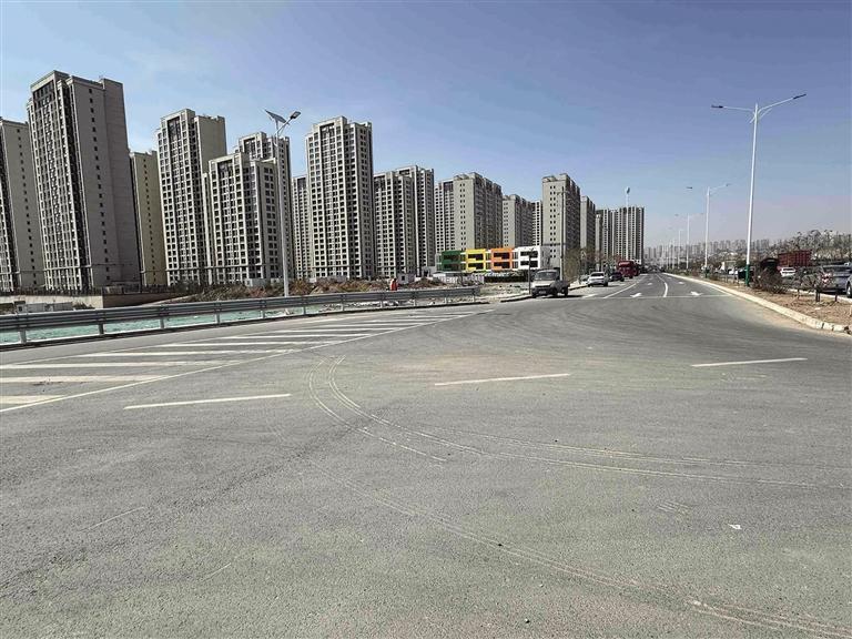該項目起點接南河道橋,終點接雁兒灣路,道路全長約545米,根據(jù)路面情況,最寬處設計為雙向六車道,窄處設計為保障通暢的雙向兩車道。項目現(xiàn)場,挖掘機、壓路機正在配合工人完成路面平整、道牙安裝等工作,灑水車也一直在場內作業(yè),確保揚塵管控做好“六個百分百”。