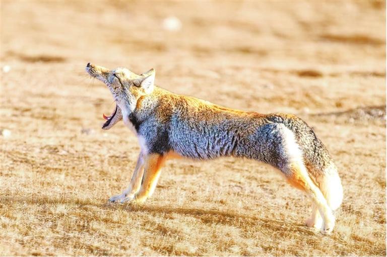 攝影師偶遇一只藏狐,它慵懶地從藏身之處緩緩走出,愜意地沐浴在春日的陽光中。它站立在草地上,伸直前后腿,將整個身體舒展成了一條優美的弧線,隨后大大地張開嘴巴,打了一個哈欠,露出那尖銳的牙齒,那模樣既透著幾分呆萌可愛,又帶著些許野性不羈,讓人看了忍俊不禁,為這寧靜的畫面增添了一抹別樣的詼諧與趣味。