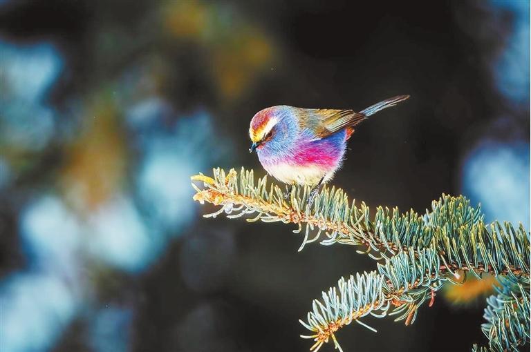 花彩雀鶯是一種毛茸茸偏紫色的雀鶯,它們是祁連山的歌唱家,它們清脆婉轉的啼鳴聲,宛如靈動跳躍的音符,打破了山間的寂靜,仿佛在向這世界的每一個角落大聲宣告著:春天來啦!它們在枝頭歡快地跳躍著,靈動的小眼睛不停地打量著周圍發生的細微變化,宛如一群天真無邪的小精靈,為這山林增添了無盡的靈動與趣味。