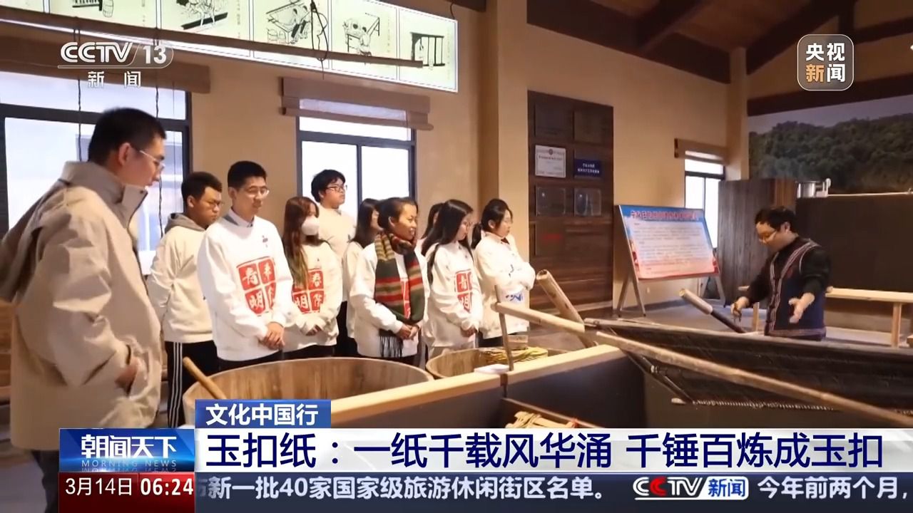 廈門大學(xué)歷史與文化遺產(chǎn)學(xué)院副教授 陳瑤:玉扣紙制作的原料非常單純。就是三種,一個(gè)是竹子嫩竹,第二個(gè)是石灰,第三個(gè)就是清潔的山泉水?;旧鲜羌兛咳斯磉M(jìn)行品質(zhì)的管控。