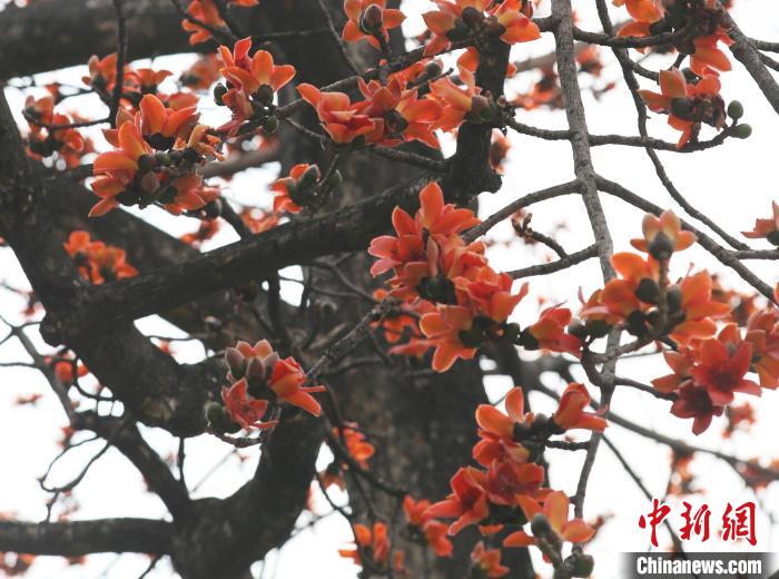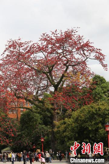 眼下,一株被譽為“中國最美木棉”的超350歲木棉樹以及周邊幾株木棉樹進入盛花期,璀璨的紅棉在中山紀念堂藍瓦朱檐的映襯下,共同構成了一道美麗的風景線,吸引眾多市民和游客駐足“打卡”。不少攝影愛好者還架起專業設備捕捉盛景,定格與木棉花的春日邂逅。